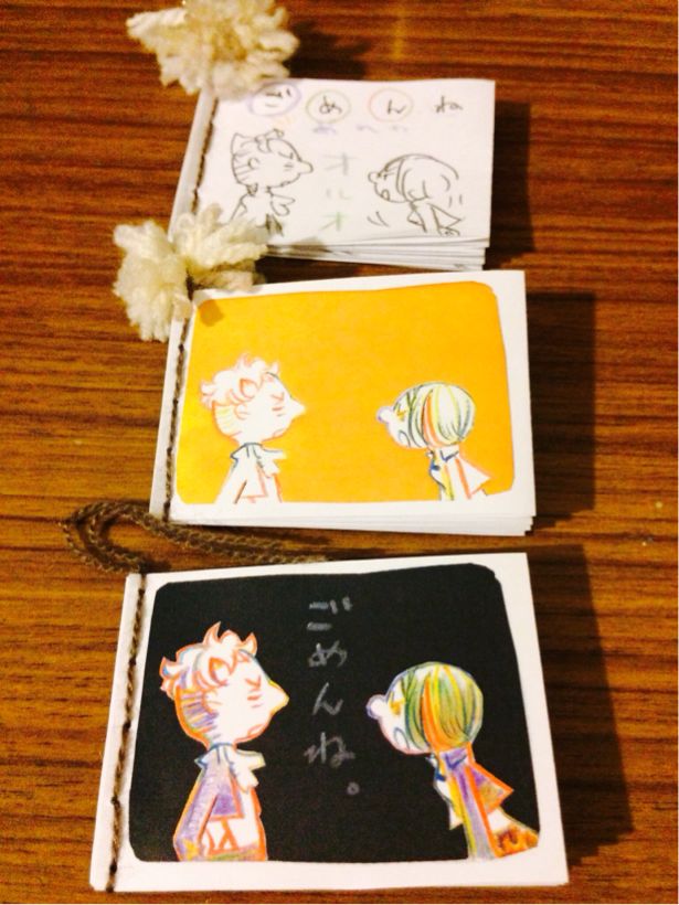26 December 冬コミ新刊お知らせ 「ごめんね。」オルペトです。16ページ。手のひらに納まるほどの小さなコピー本です。写真の一番下が完成形アナログだから試行錯誤もなかなか時間がかかって大変でしたデジタルはやはり便利だー!製本には多少差が出ると思いますがどうぞよろしくお願いします! [1回]2013/12/26 06:23:32 オフライン