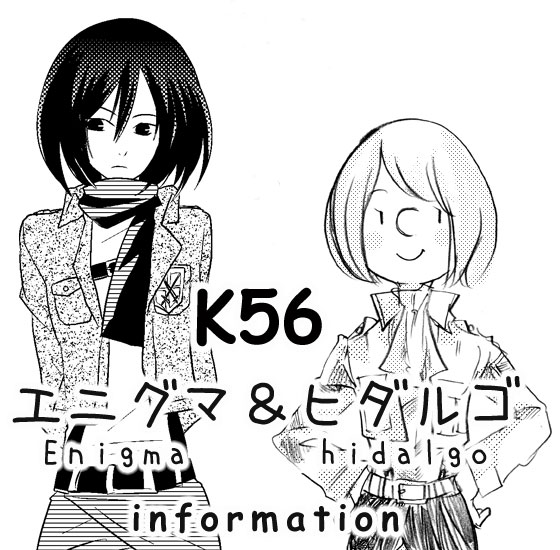 16 June FALL OF WALL2 20130613:ヒダルゴの新刊案内等追記しております 20130601:スペース確定しましたのでお知らせ! 20130525:邪魔なのでお知らせ等は記事をたたみましたw スペースナンバーは【K56】です ★エニグマお知らせ★ :頒布予定: 既刊 『進撃の臣人』 『pixis』 『衝撃の巨人』(Sold-out) ★ヒダルゴお知らせ★ :頒布予定: 新刊 『たとえばこれが、夢だとしても』 表紙見本 本文見本 『いろとりどりのねがい』(オフセットフルカラー予定) 『何度泣かせば気が済むの?』(オフセット予定ですがコピーになるかも) 既刊 『リヴァイ城のひみつ』 『すてきなひと』 ※『すてきなひと』なんですが、もしかしたら印刷する時間がないかもしれなくて 今手元には数冊しかないので持っていくかどうか分かりません 『リヴァイ城のひみつ』は再販します。 K-BOOKSさんにもまた委託していただく予定です 20130524:通販再開しました 気付いたら売り切れてました。 [3回]PR2013/06/16 11:00:00 オフライン