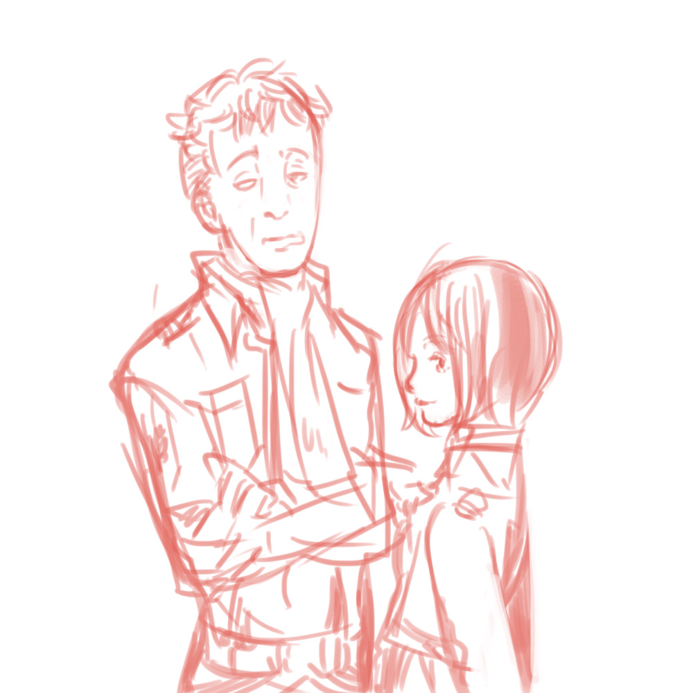 05 June オルオとペトラ ちょっと日付が変わるのを待っていなきゃいなかったので 落書き 私はカッコいいオルオを描きたいんです ていうか、かっこよくいて欲しいのです リヴァイとは違う方向の。 こういうのが一人くらいいても罰は当たらないと思うのです 最近リヴァイ城の朝の後編は手付かずで 別の絵を一所懸命描いていたので そろそろリヴァイ班を描きたくて手が震えてきてしまいそうです 今日それも終わったので また帰ってきてからちょこちょこ描きすすめます もっとちゃっちゃと描ければいいのにな~! [1回]PR2012/06/05 01:02:07 落書き
