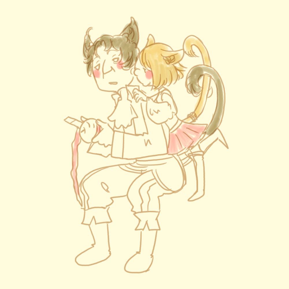 28 July オルオとペトラのマイブーム この二人はなんかミコッテ化するのがマイブーム 猫耳と尻尾とか苦手な人もいると思いますから一応折りたたみます どうしてもペトラは小さくなっちゃう [0回]PR2013/07/28 02:07:02 落書き