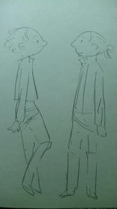 26 August ナナバとエルド 薄々気付いていたけど目の書き方同じで前髪の雰囲気も似ているからすごく被っている…女子は腰のくびれ見せたいから自然にジャケットの丈が短くなるな^^ [4回]2012/08/26 00:44:40 落書き