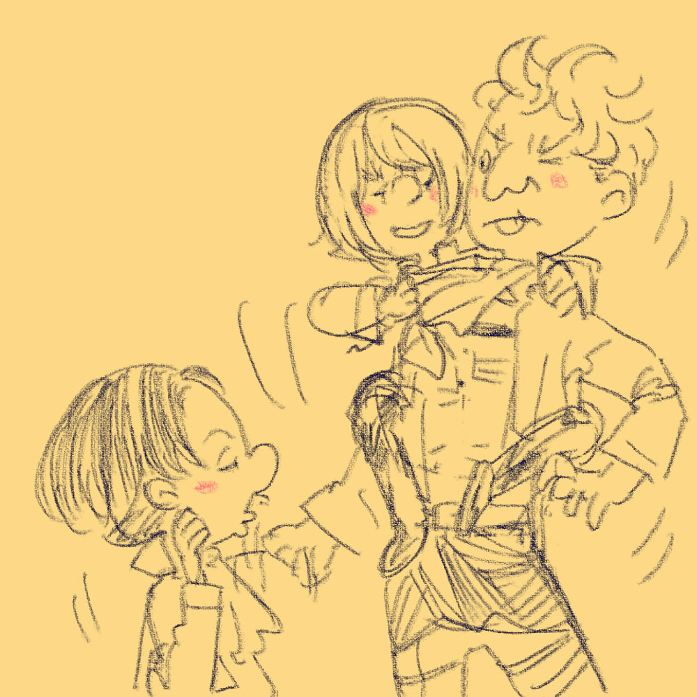 06 August 壁外調査博へ向けて 昨日壁外調査博のサークルチケットや案内が赤ブーブーから届きました! スペースは ク40a です そして今、それに向けて色々締め切りがやばいなって感じで頑張っています 更新は仕事前にケータイから添付で送っていたので 今週夏休みなので ちょっとブログが放置状態になってしまいました アニメもまだ17話みてないんですよねぇ… 居間にしかテレビがないので家族がいる前で見るのはちょっと恥ずかしいっていう! そんな感じで特にこれといって話題がないんですが twiterでは結構落書きをあげたりしていたので それをはっつけておきます。 新しいものはないです。 追記です。 書き忘れました。 別にたいしたことじゃないんですけど 赤ブーブーのオンリーって申し込んだの初めてだったので YOUとの準備の差っていうか チケットがカラーだ!ってこととか、なんか全体的にすごくワクワクするなーって そんだけ! つづき [0回]PR2013/08/06 18:16:56 落書き