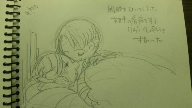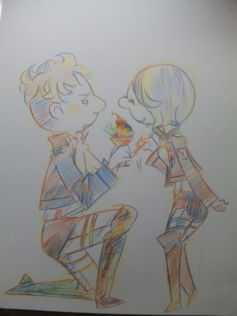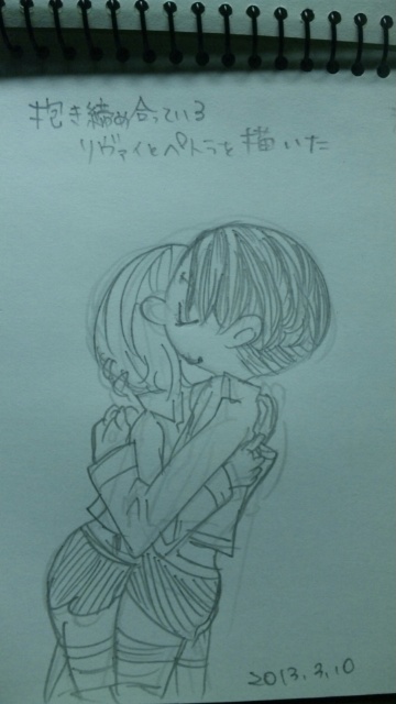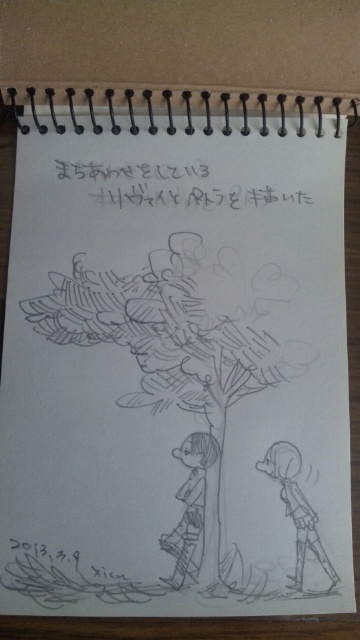 02 April 診断絵まとめ:1~5 全部で70種類のシチュエーションあるツイッタの診断に毎日一回ずつ「リヴァイとペトラ」「オルオとペトラ」と試していましてそれで70ページあるハガキサイズのクロッキー帳(一年以上買ってから放置していた)を埋めよう計画しています描画には消しゴム使わないとかあんまり時間かけないとか縛りをかけているのでひどいもんですがすごく楽しい!ツイッターに投稿していましたがこっちにも転載…! [1回]PR2013/04/02 06:24:10 落書き