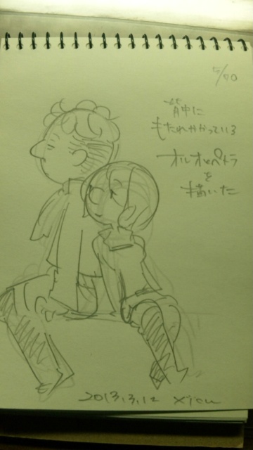 24 February ちょっとらくがき オルオパパ風 オルオの足元をちょこまかちょこまかと追いかけっこする ペトラとリヴァイも描きたかったが色々やらなきゃいけないことがあるので (それもらくがきだが) [1回]2013/02/24 13:35:22 落書き