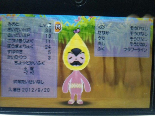 23 September 電波人間のRPG2 という3DSのゲームが26日に発売で今は体験版をDLして待ち遠しくしているんですが…私の部屋で捕獲したこの電波人間がなんかミケさんとオルオを足して割ったような雰囲気でなんか気に入っています [1回]PR2012/09/23 22:19:12 雑記