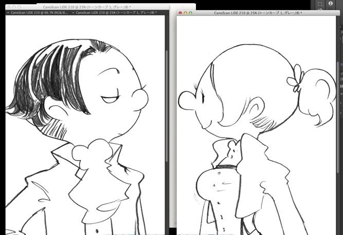 06 April スパコミ そういえばこっちでまだ告知してませんでしたがスペースは5月4日西2ホールO33bです。リヴァペトスペースでリヴァペトプチオンリーに参加してますあと記念アンソロにも寄稿させていただきましたあとは自分の本…!いつもはコピー用紙に鉛筆書きのをスキャンする形でやっているんですがスキャナを変えたら性能が良すぎて紙の凹凸やらまで読み取ってしまい調整が凄く大変なので今ちゃんとした原稿用紙とどっちがいいか比べているところです…今やるなって感じではあるんですがw右のペトラが今まで通りのコピー用紙で左のリヴァイはマンガ原稿用紙に描いてみたものを同じ設定でスキャンしてみました 個人的にはつるつるなマンガ原稿用紙よりもすこしざらつきのあるコピー用紙のほうがアナログ感が出て好きなんですけど今回はマンガ原稿用紙で行ってみようかなーって思ってます頑張らなければ [1回]2014/04/06 21:05:14 オフライン